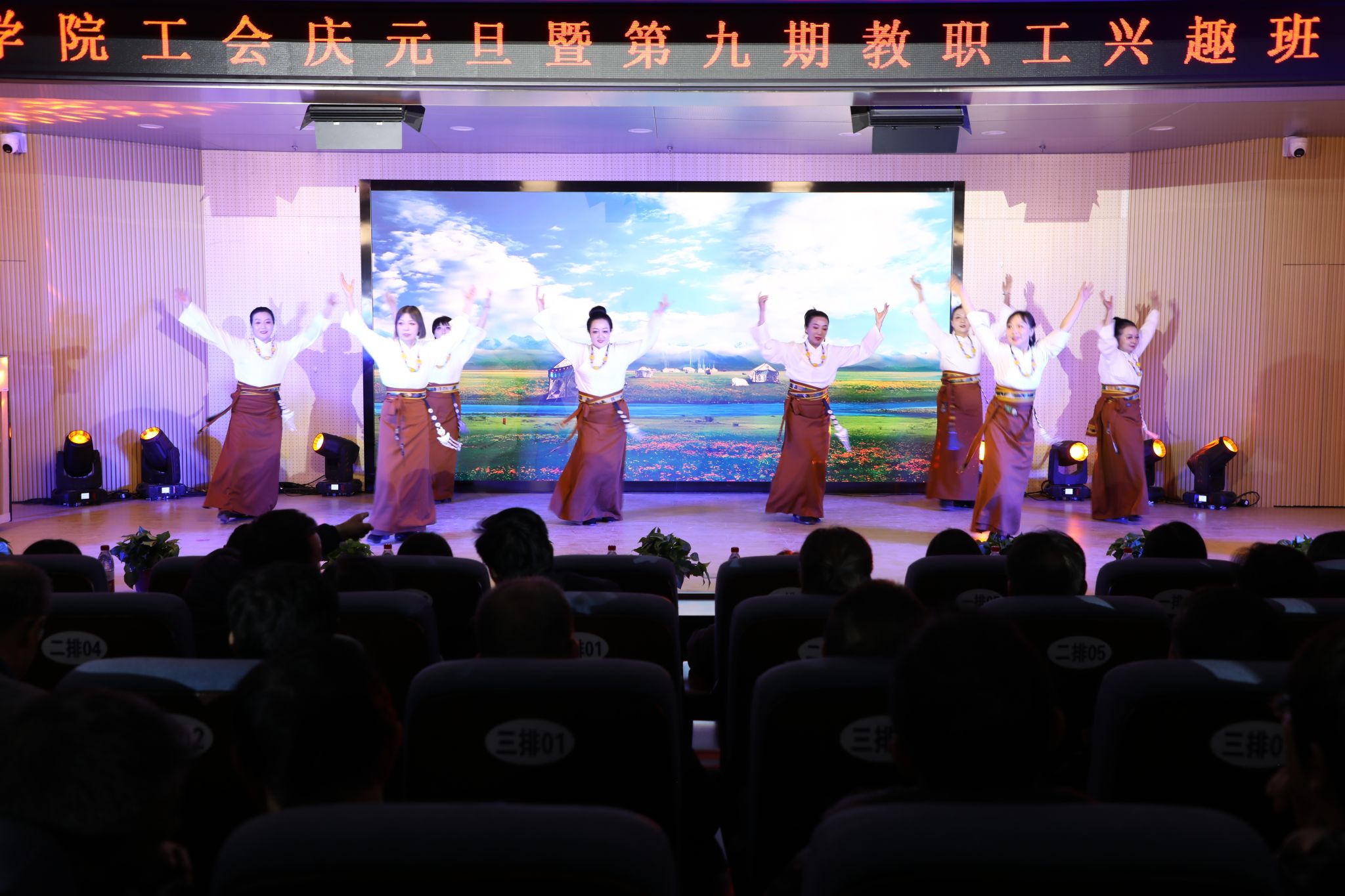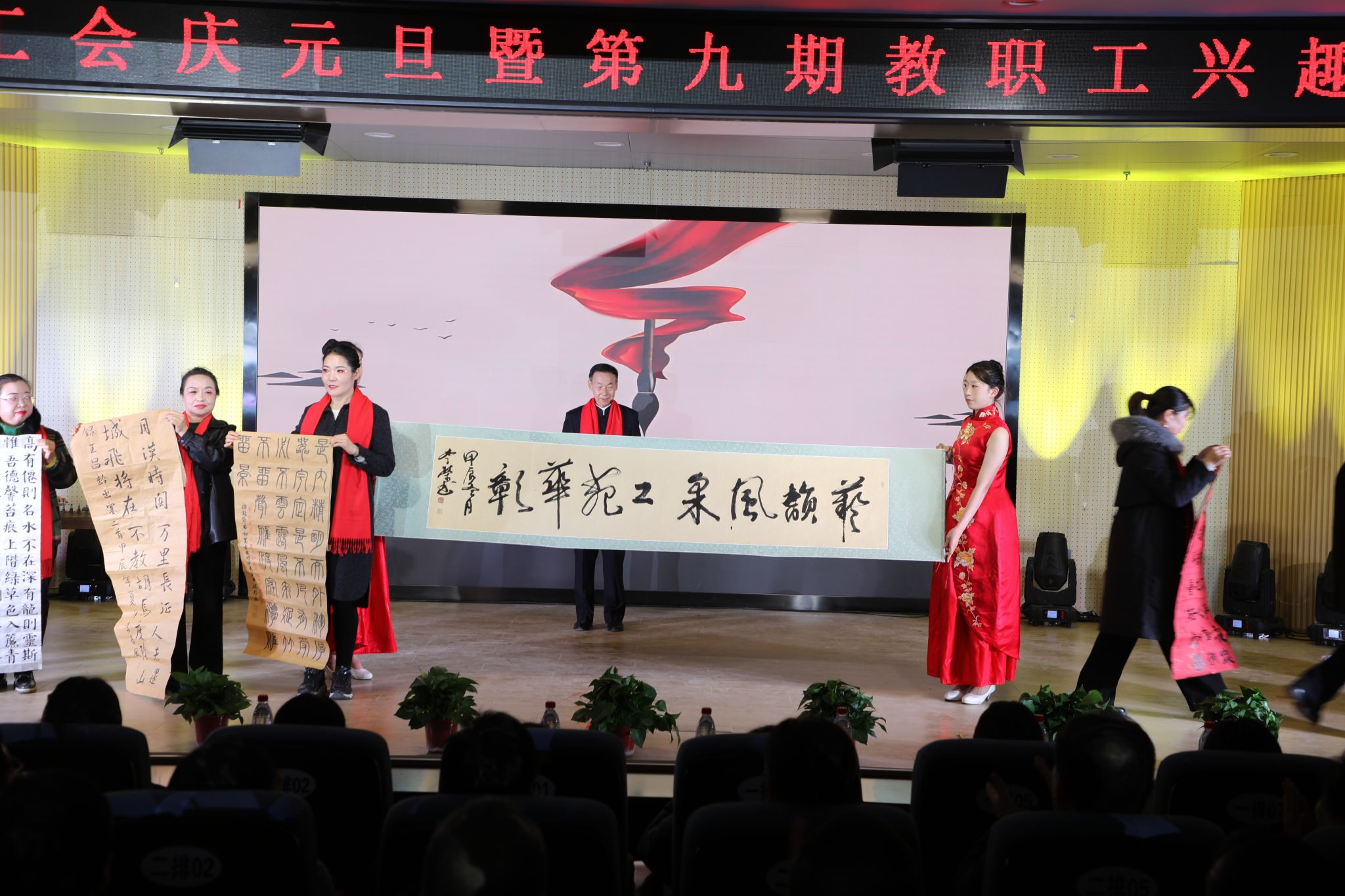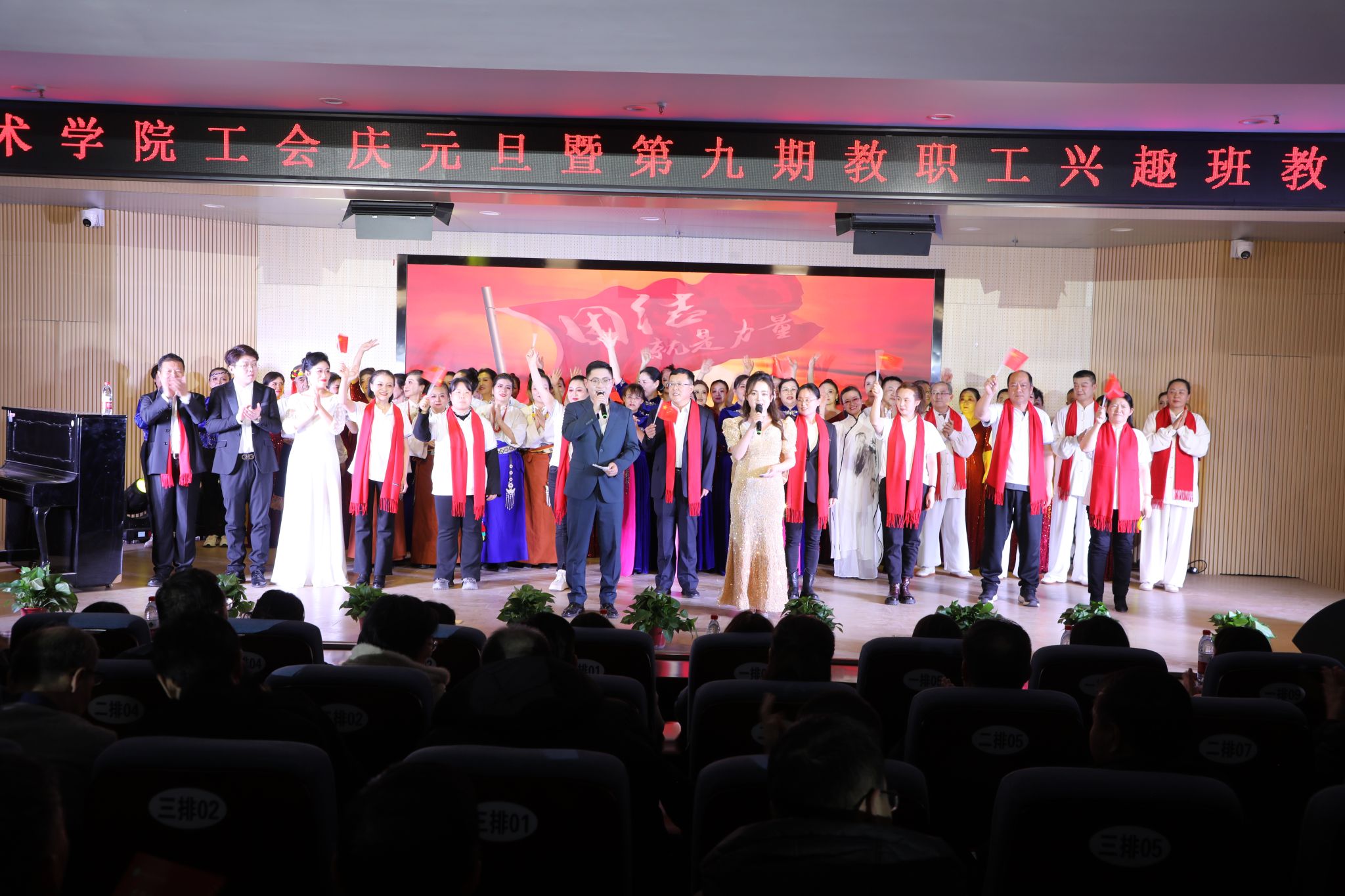 12月30日晚,延安职业技术学院工会举办“艺韵风采 工苑华彰”庆元旦暨第九期教职工兴趣班教学成果展演晚会。党委书记冯奇海等学院领导出席,各处()、系(院)负责人及教职工300余人在现场观看演出,同时现场直播约3000余名观众在线观看。